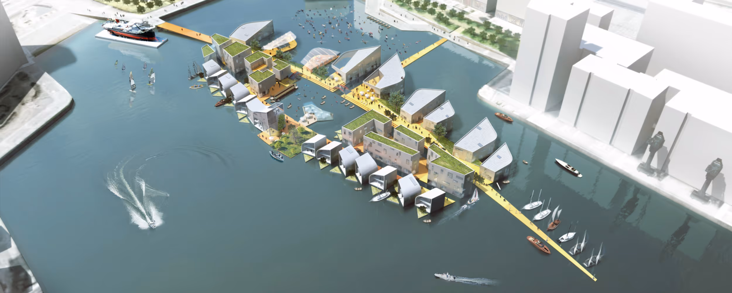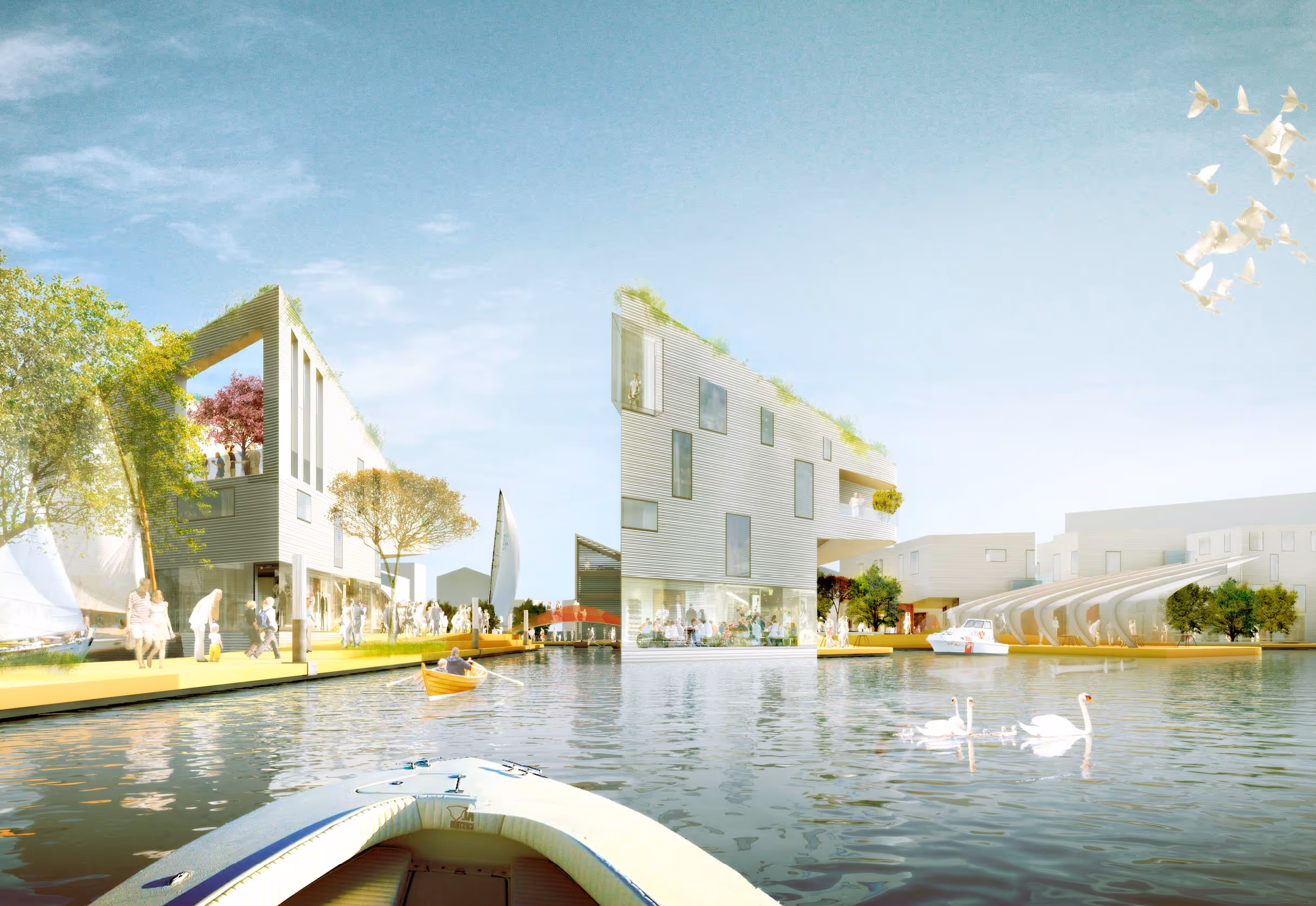BACA were runners-up in an ambitious proposal to create a floating village in London’s Royal Docks, part of the Mayor of London’s vision for the city’s future waterfront. Designed in collaboration with Hadley Mace, the scheme imagined a bold new destination called "The Crown", a floating neighbourhood set within the dock basin, surrounded by water and connected by walkways, gardens and lively public spaces.