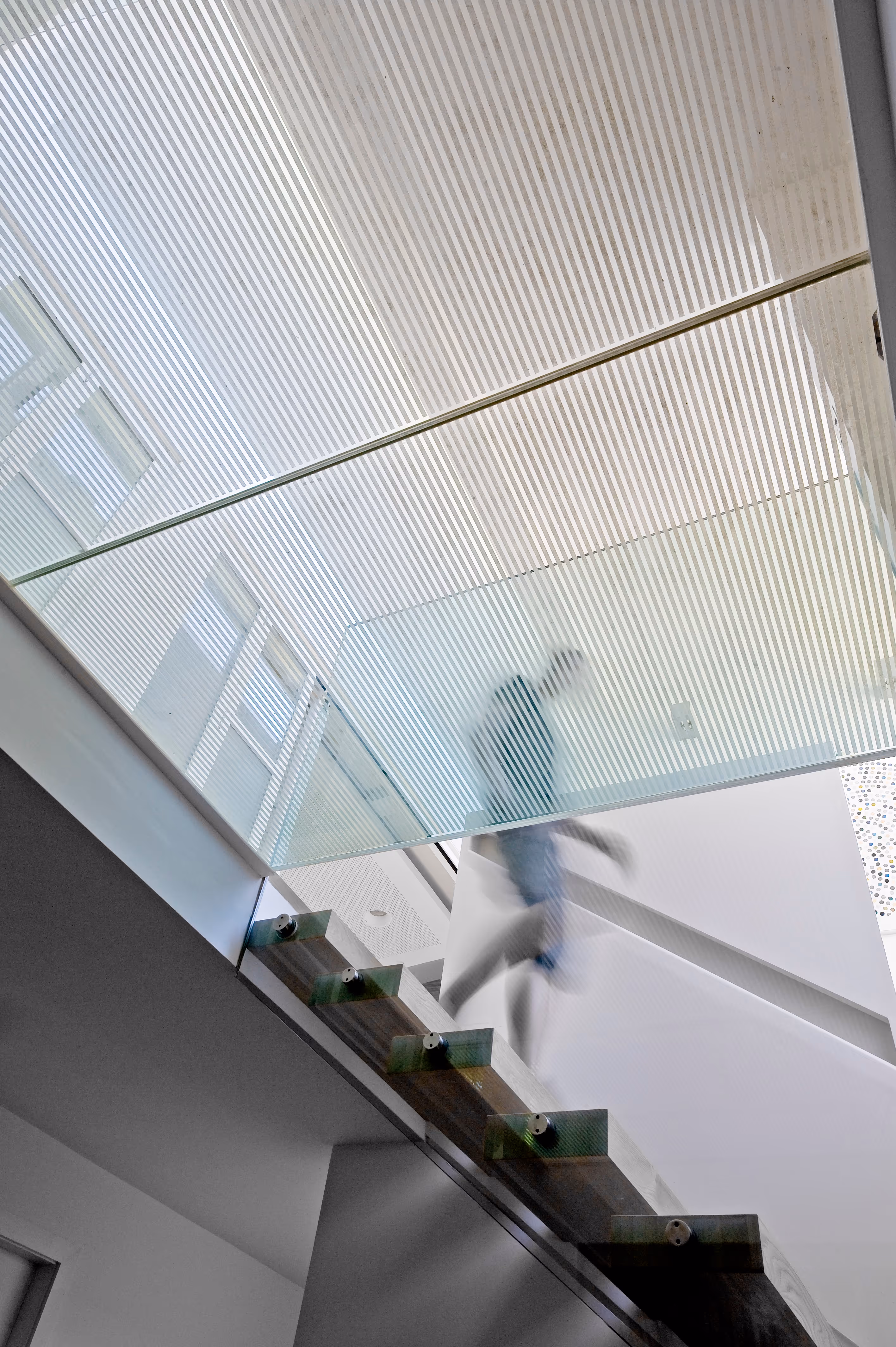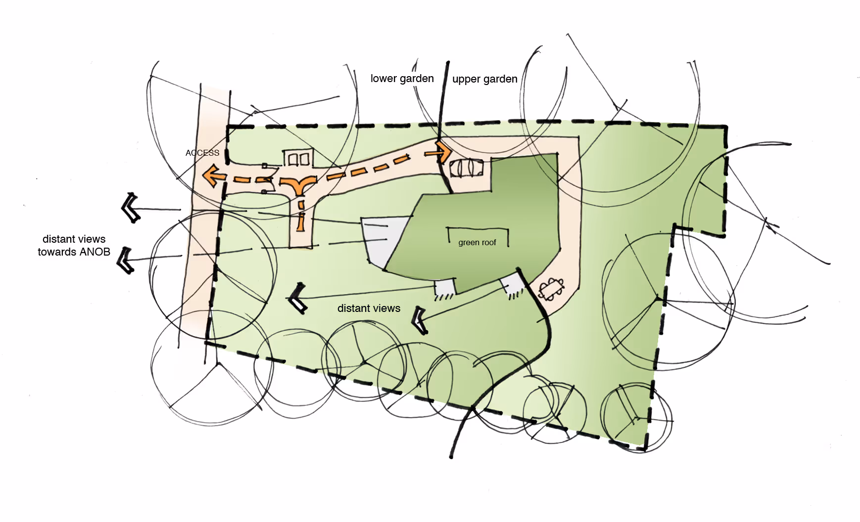 Set into a sloping site and accessed via a historic sunken lane. At first glance, the barrel-vaulted roof and glass-floor threshold hint at innovation.