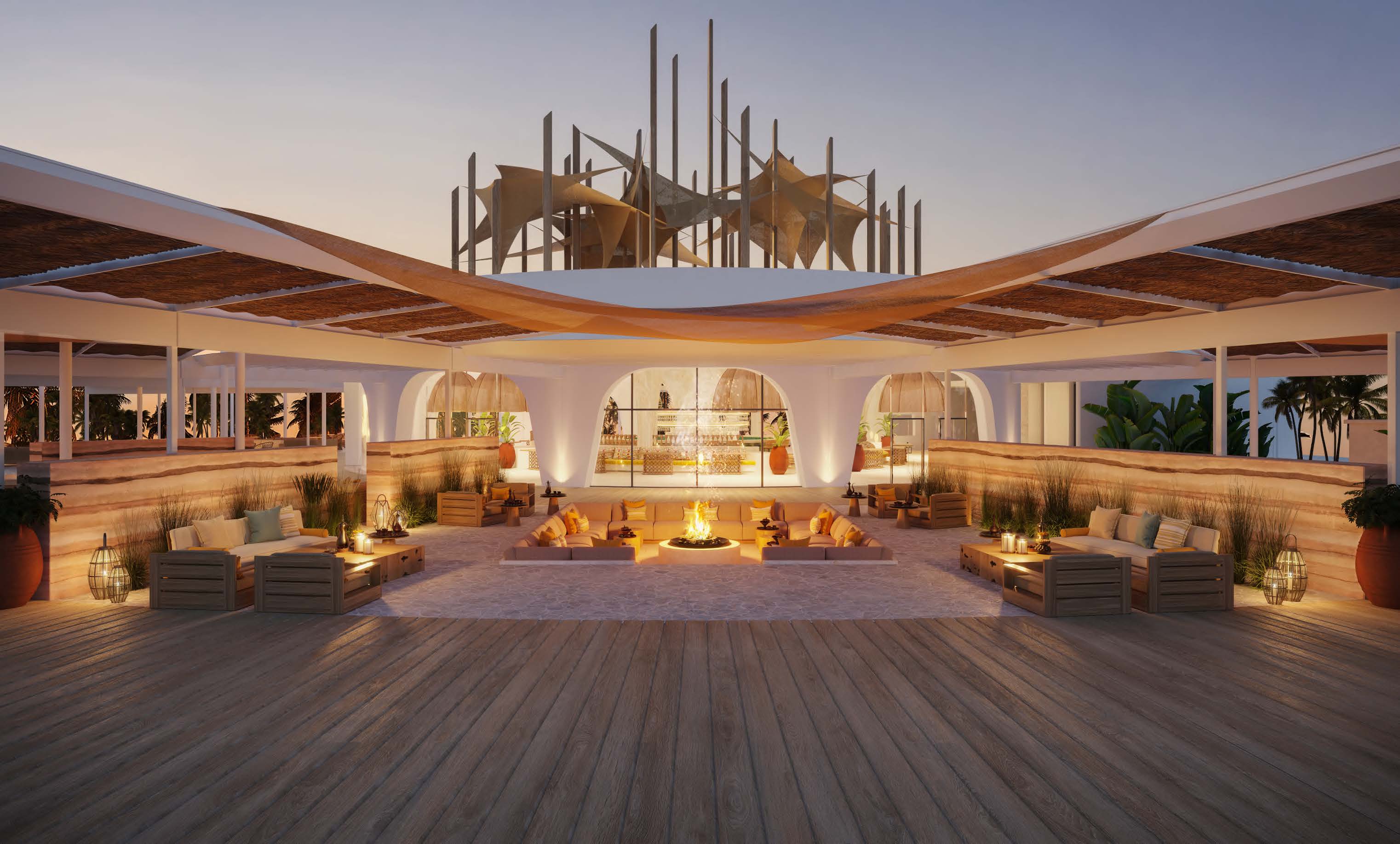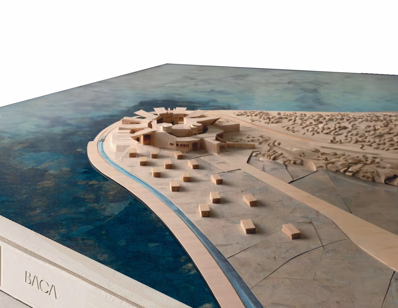 Architecturally, the Yanbu Beach Club is a dialogue between land, water, and light. Elevated walkways and permeable landscaping reduce flood impact and preserve natural drainage, while sculpted canopies frame panoramic views of the Red Sea. Throughout the day, sunlight dances across the pathways, transforming the experience of space and shadow. Each curve, arch, and aperture has been designed to respond to the wind, the water, and the human journey through the site.