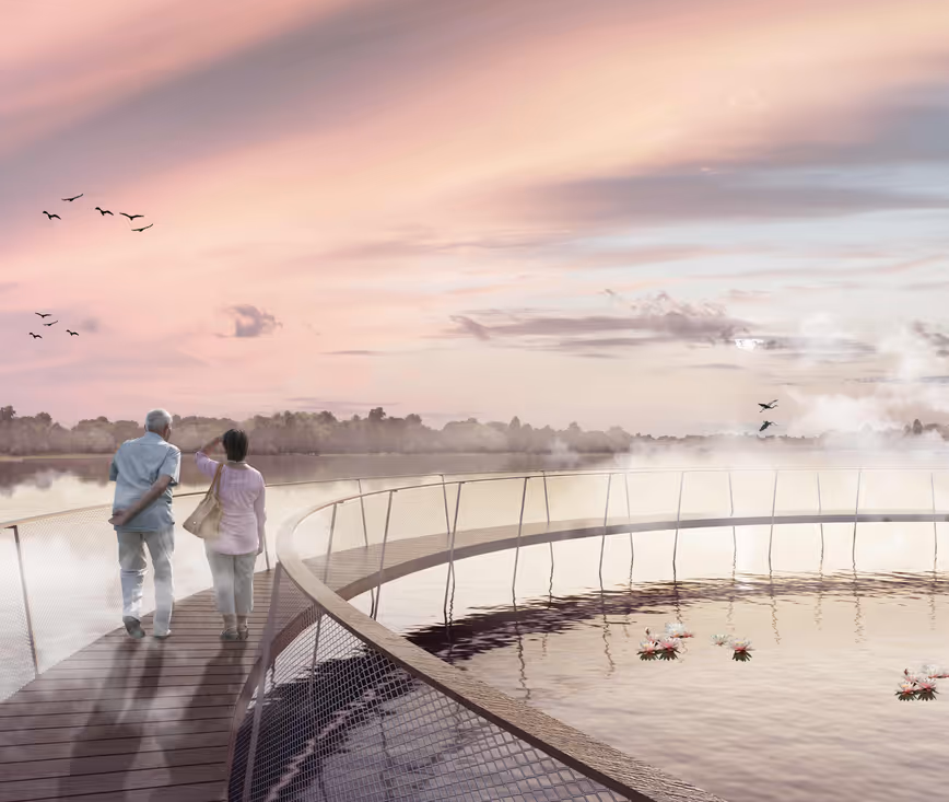 The approach to the resort will take guests through a landscaped sequence from their moment of arrival, where they’ll leave their car behind in a park graced with rain gardens. Here, their experience of connection with nature, ecological diversity and wellbeing begins. A stroll through swales leads to a land bridge which connects the lakeside with the clubhouse.